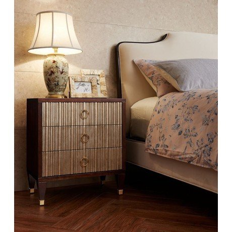 Прикроватная тумба выполнена в стиле неоклассика. Отделка Cherry C, состаренное сусальное серебро.
